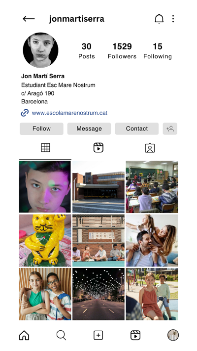 Un dels alumnes de cinquè de primària, anomenat Jon, ha estat protagonista d’un incident significatiu relacionat amb la gestió de la seva identitat digital. En Jon, de deu anys, havia creat un perfil en la xarxa social Instagram, tot i que l’edat mínima per registrar-s’hi és de tretze anys. Al seu perfil, en Jon va compartir informació personal, com el seu nom complet, l’adreça i fotos de la seva família i amics sense permís.